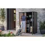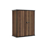 Tall, dependable and maintenance free, when you need vertical storage space the Keter 4.5′ x 2′ Walnut Signature Heavy Duty Vertical Plastic Garden Shed with Shelves – Walnut is there for you.