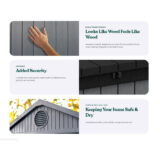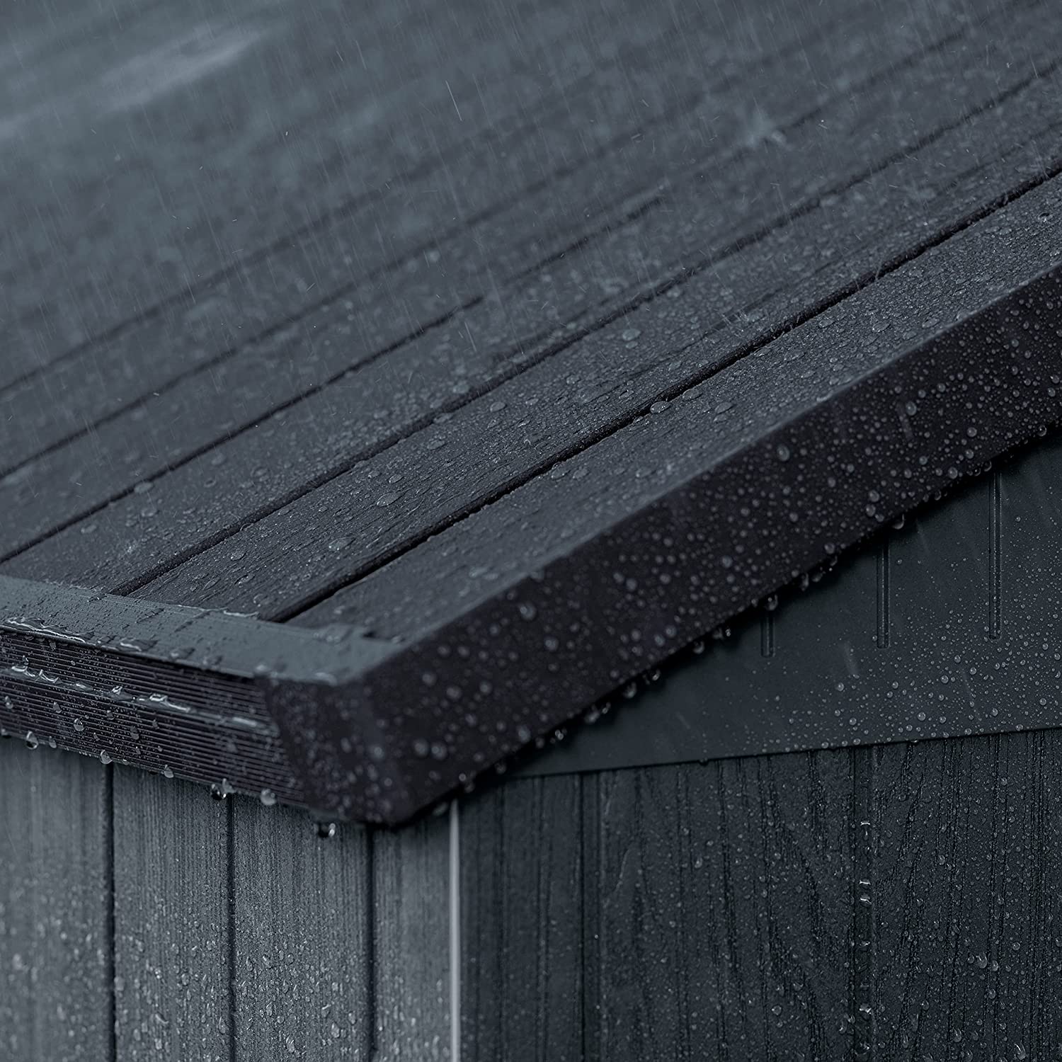The Keter 6’x8′ Darwin Heavy Duty Plastic Garden Shed – Grey is everything you want in a shed. It looks and feels like real wood, but it performs like nothing else. Thanks to our Evotech composite technology, Darwin requires zero maintenance – it will not rust, peel, or rot.