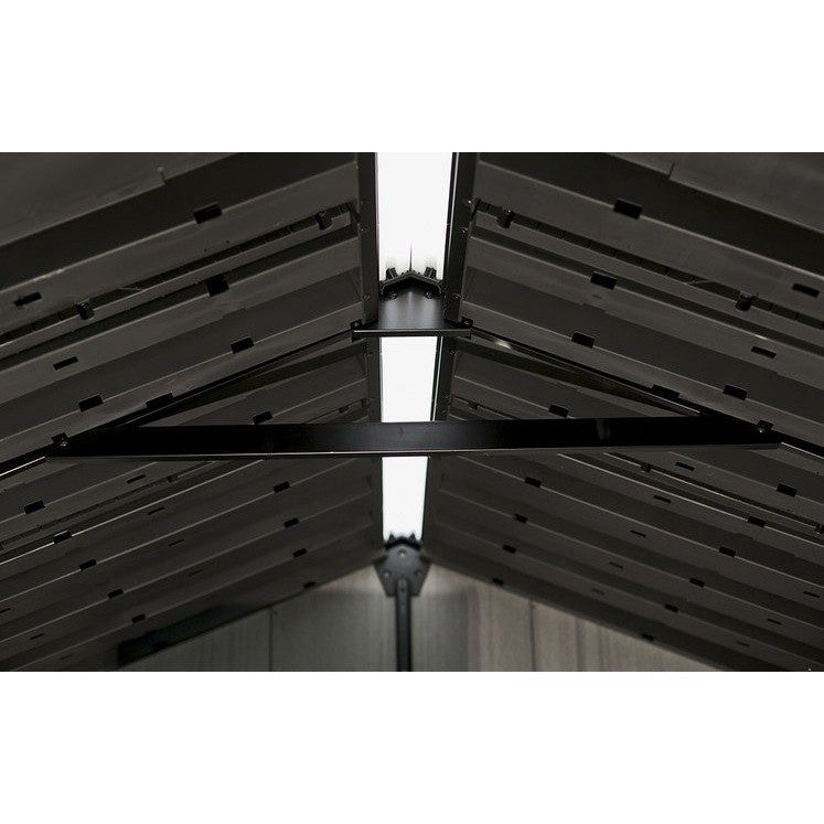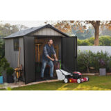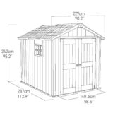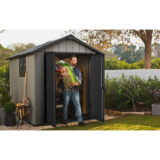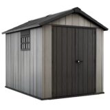 Bringing elegant and durable storage with a fine weathered wooden-textured shed to your garden . The Keter 7.5′ x 9′ Oakland Heavy Duty Plastic Shed is built for durability from bottom to top with a heavy-duty floor that can hold your heavier items and has a double wall build with steel reinforcement. The Keter 7.5′ x 9′ Oakland Heavy Duty Plastic Shed is fully weather-resistant and low maintenance