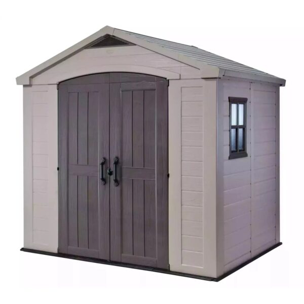 The Keter 8’x6′ Factor Heavy Duty Plastic Garden Shed – Beige will provide ample space for a wide variety of tools and equipment.
