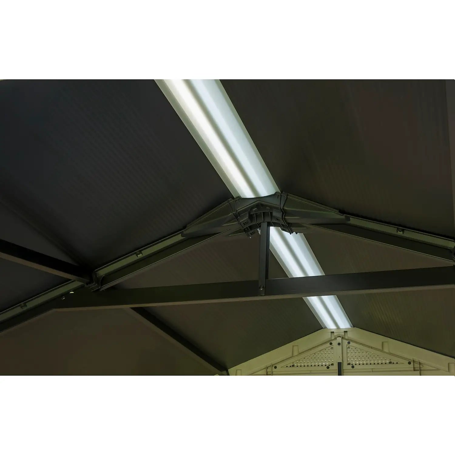 The Factor 8×6 shed gives you ample storage with plenty of convenience. Made from durable weather-resistant resin, this shed won’t rust or rot like wooden sheds, and comes with steel reinforcements for added strength. It features a heavy-duty floor that protects your equipment from water and mud, high-arched double doors that will allow you easy access to the shed contents, and with two shelves are included for instant organized storage. A full-length skylight lets in plenty of natural light, and it’s lockable too, so you can keep your contents safe, day and night.