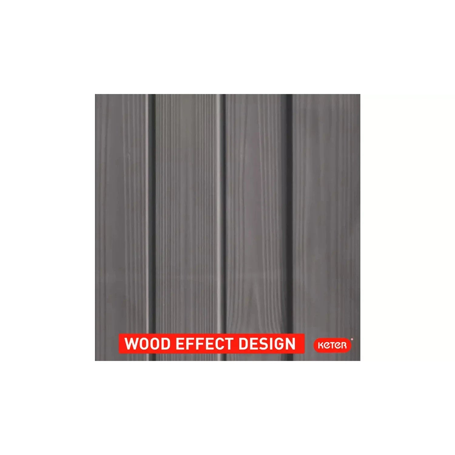 The shed is constructed from durable and robust polypropylene with steel reinforcement. The wood effect finish is UV stabilised for fade resistance, and the shed is virtually maintenance free, simply requiring an occasional wash to stay looking clean.