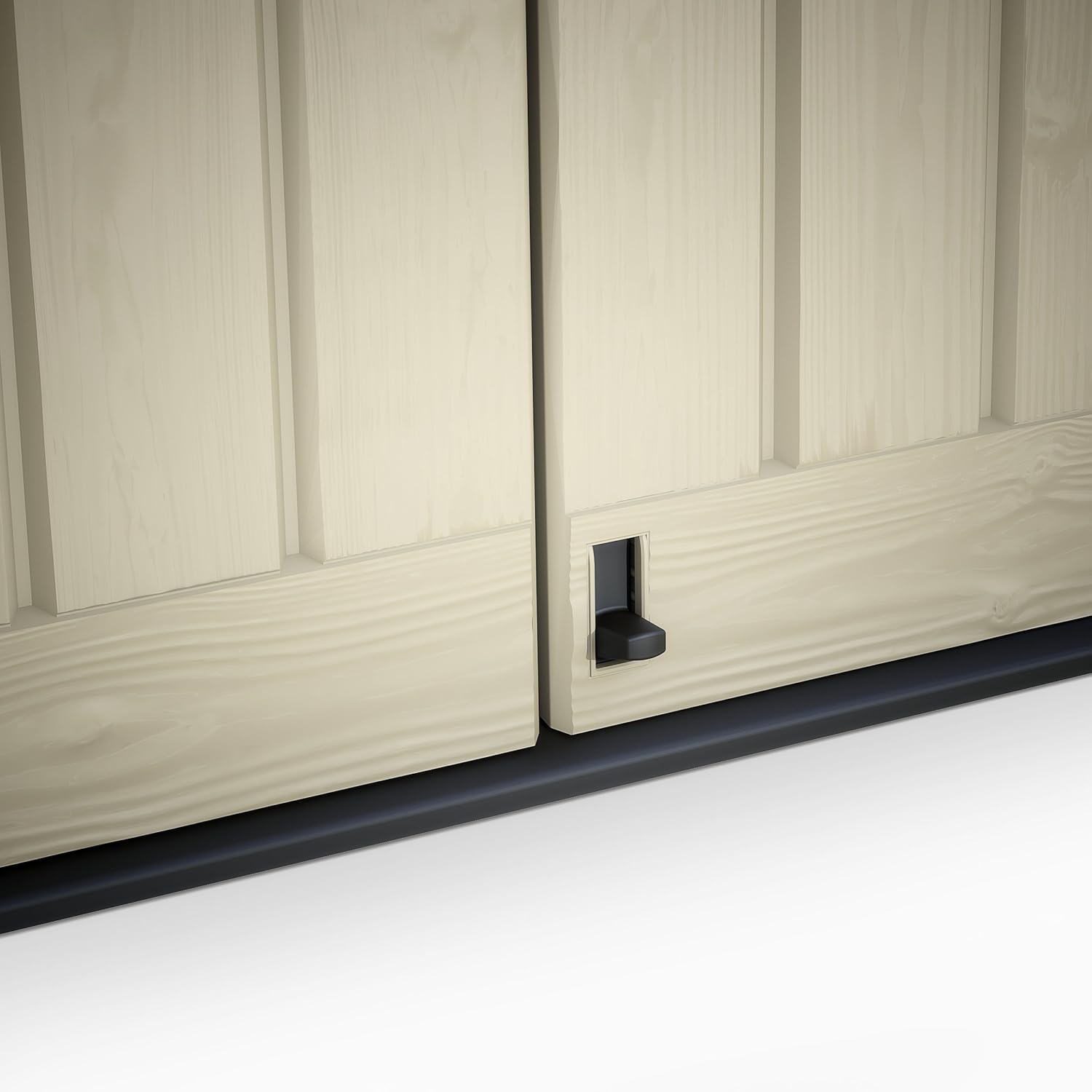 - Heavy-duty floor with main door bolt and secondary foot bolt for secure closure